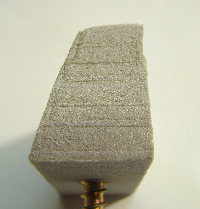 Styrodur jsem nařezal zalamovacím nožem a vysmirkoval do požadovaného tvaru. Následně jsem do něj vtláčel kousek dřevěného a plastového hranolku abych docílil že beton byl vylétý do šalování (bednění).
