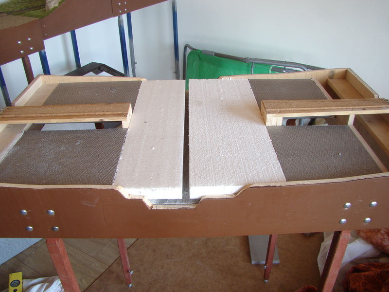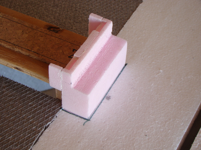 Na horní část už jsem použil klasický bílý polystyren. Líp se pak opracovává než ten XPS.