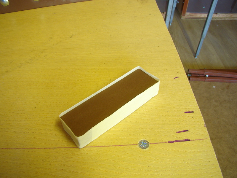 Abych nemusel vyplňovat celý prostor vagonu, tak jsem si jako základ vyřízl hranolek ze styroduru (polystyren XPS bezkuličkový). Na něj jsem nalepil oboustranku.