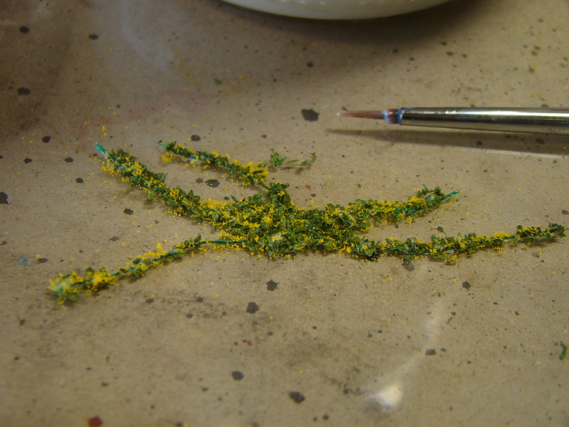 A následně zasypal hlínou kterou jsem zafixoval ředěným sportakrylem mat 1:1 s vodou.