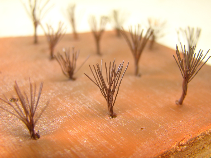 Z měděných drátů jsem vyrobil kostry pro rybíz nebo co by to mohlo být :) možná maliny..... , které jsem nastříkal hnědým sprejem.