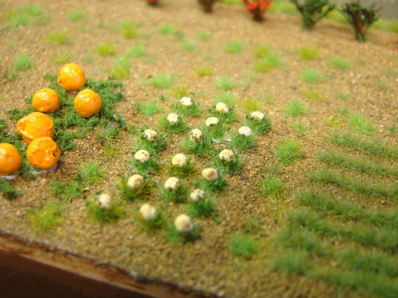 Ze semen které jsem si vypůjčil z kuchyně a následně obarvil vznikly dýně a květák. Kolem flok a mikromolitan.